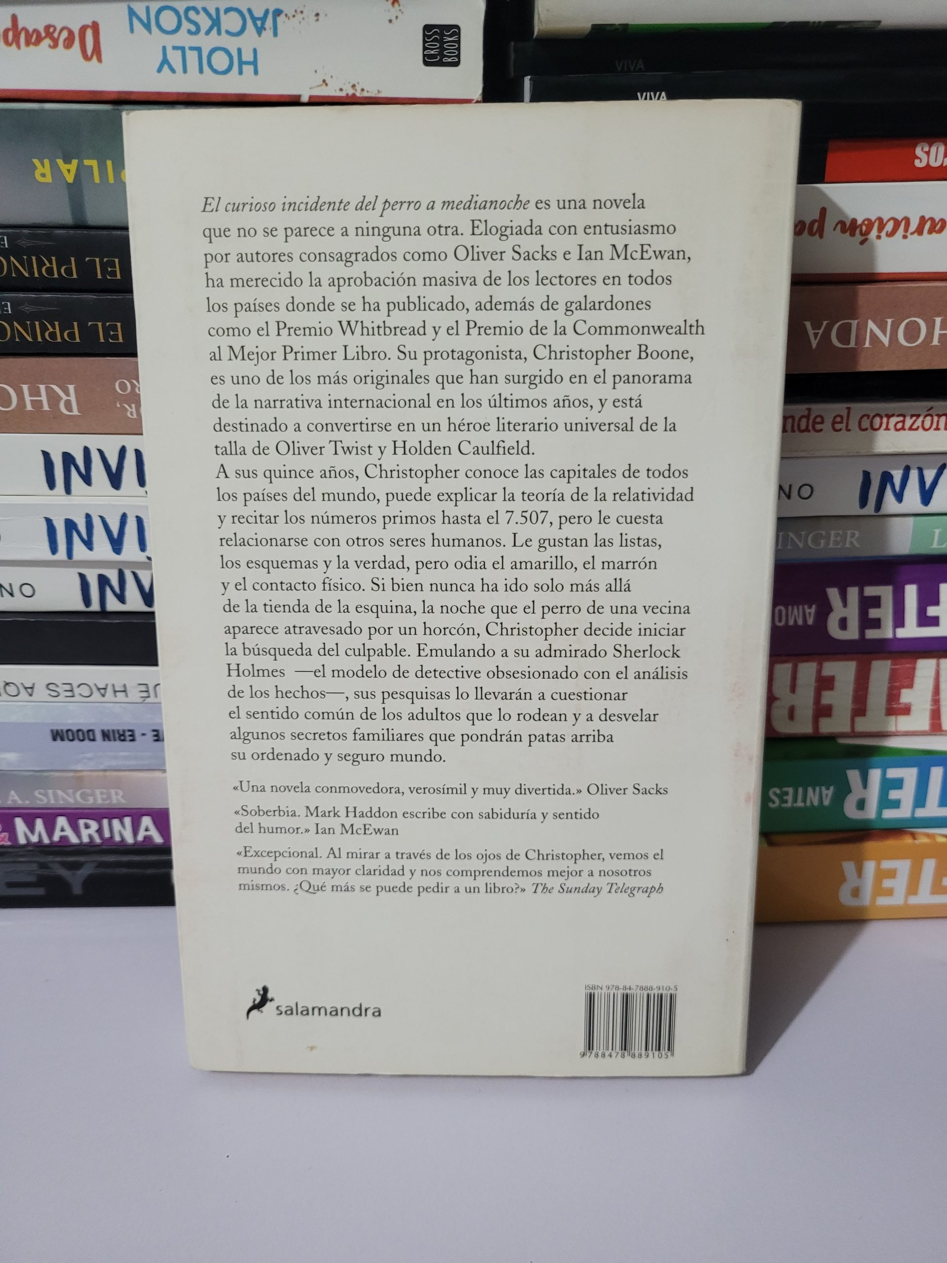 Una novela de misterio única narrada desde la mente de Christopher Boone, un adolescente de 15 años con un trastorno del espectro autista. Lo que comienza como la investigación del asesinato del perro de su vecina se convierte en un viaje transformador que desafía su lógica y lo obliga a enfrentar secretos familiares ocultos